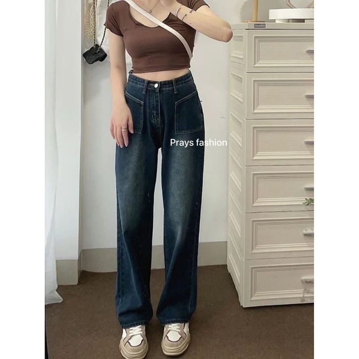 Celana Panjang Cewek Celana Jeans Wanita High Waist Wanita Jeans Wanita Warna Retro Model Trendy Kantong Depan