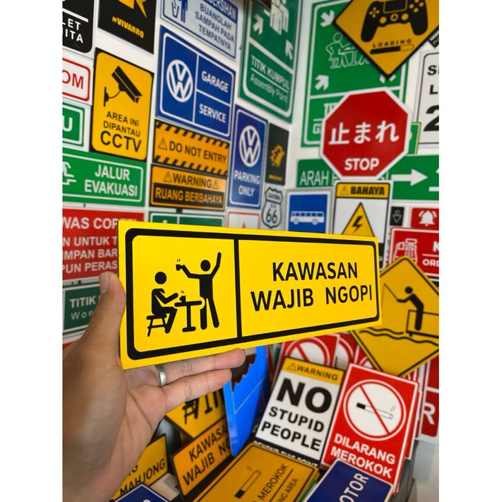 TERLAKU Sign Kawasan Wajib Ngopi 10x30cm ACP Reflektif igecf