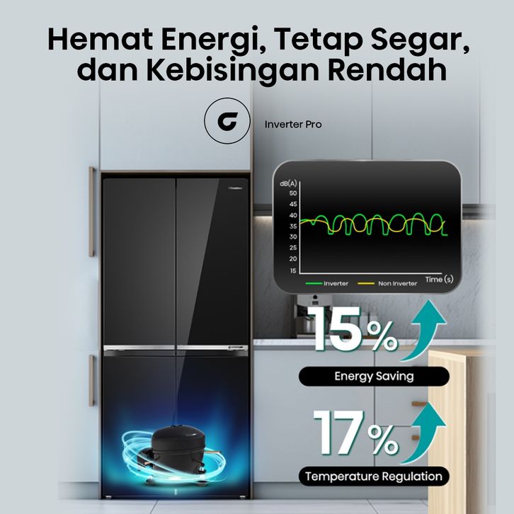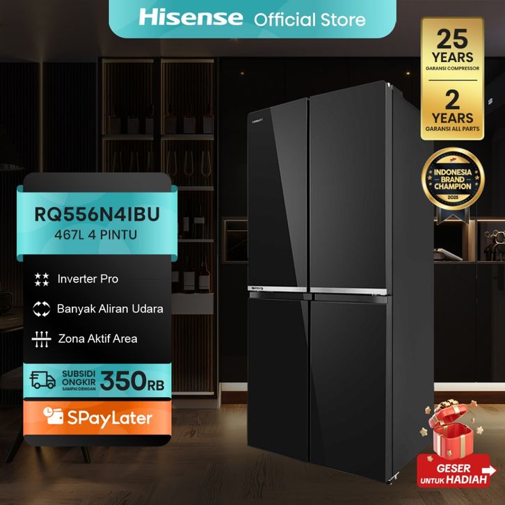 Hisense Kulkas 4 Pintu - RQ556N4IBU - 467L Gross Capacity - Refrigerator - Black Terlaris New