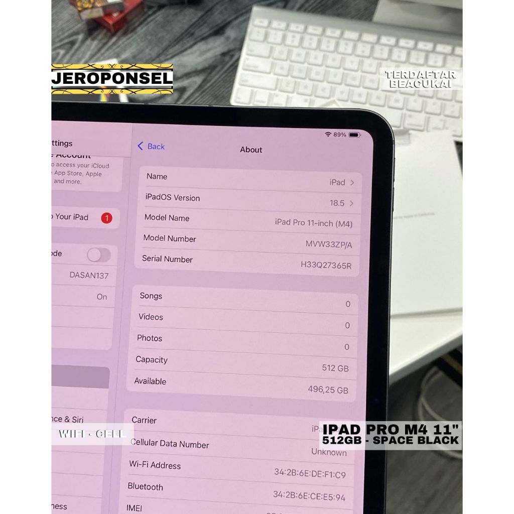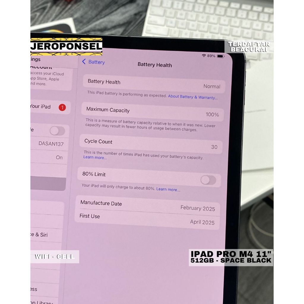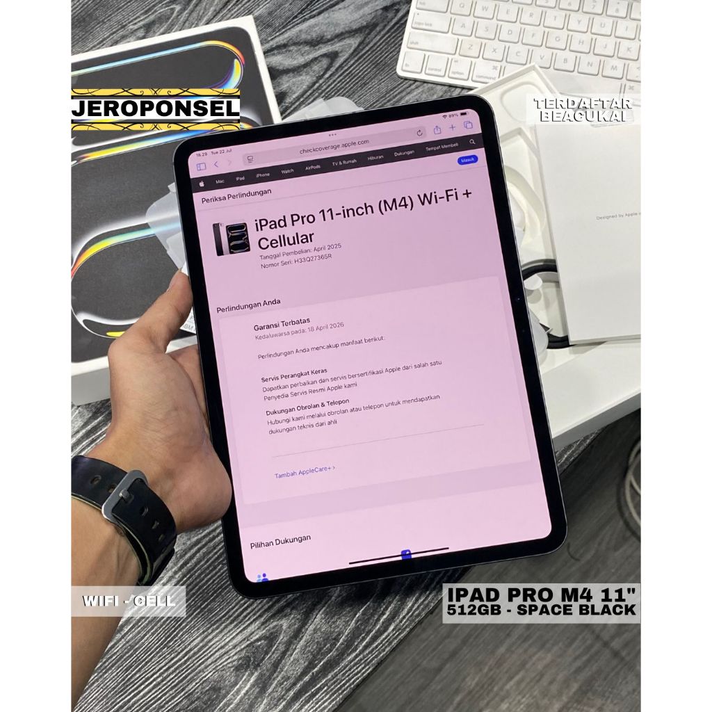 IPAD PRO M4 11” 512GB WIFI CELLULAR LIKE A NEW GARANSI PANJANG TERDAFTAR
