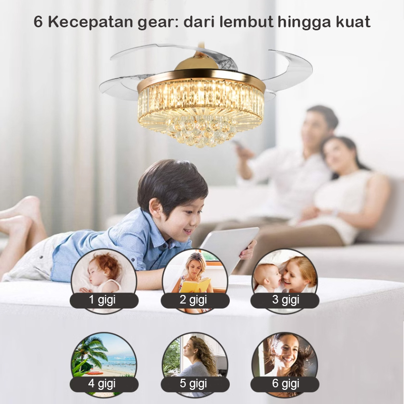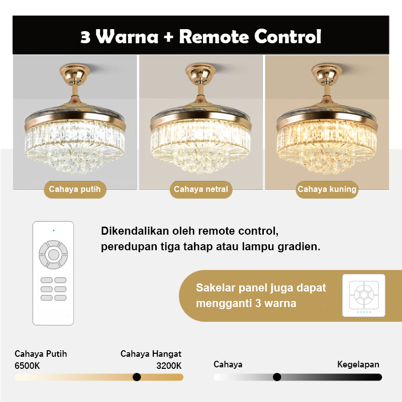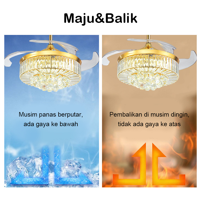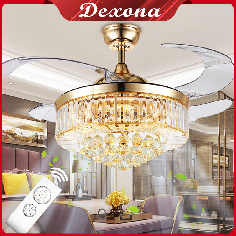 Kipas Angin Lampu Kristal 4Bilah 3Warna Led Kipas Chandelier Mewah Crystal Chandelier Meja Makan Meja Makan Ruang Tamu K