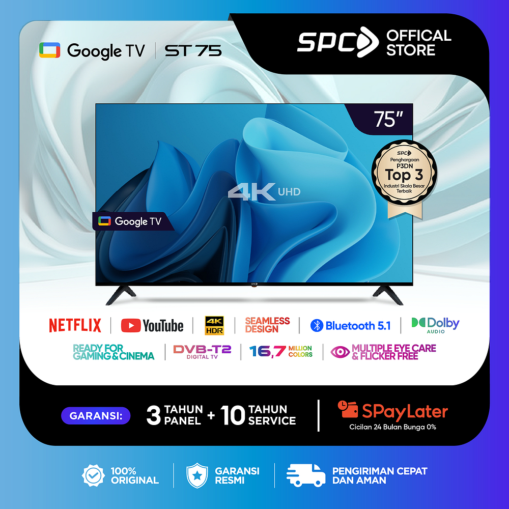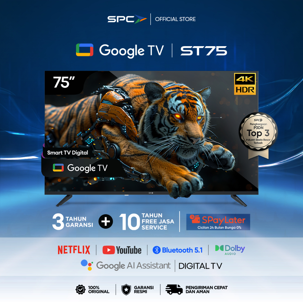 Spc Smart Tv 75 Inch - St75H - Google Tv 4K Uhd | Dolby Audio | Google Assistant | Digital Tv | Frameless | Ultra Slim
