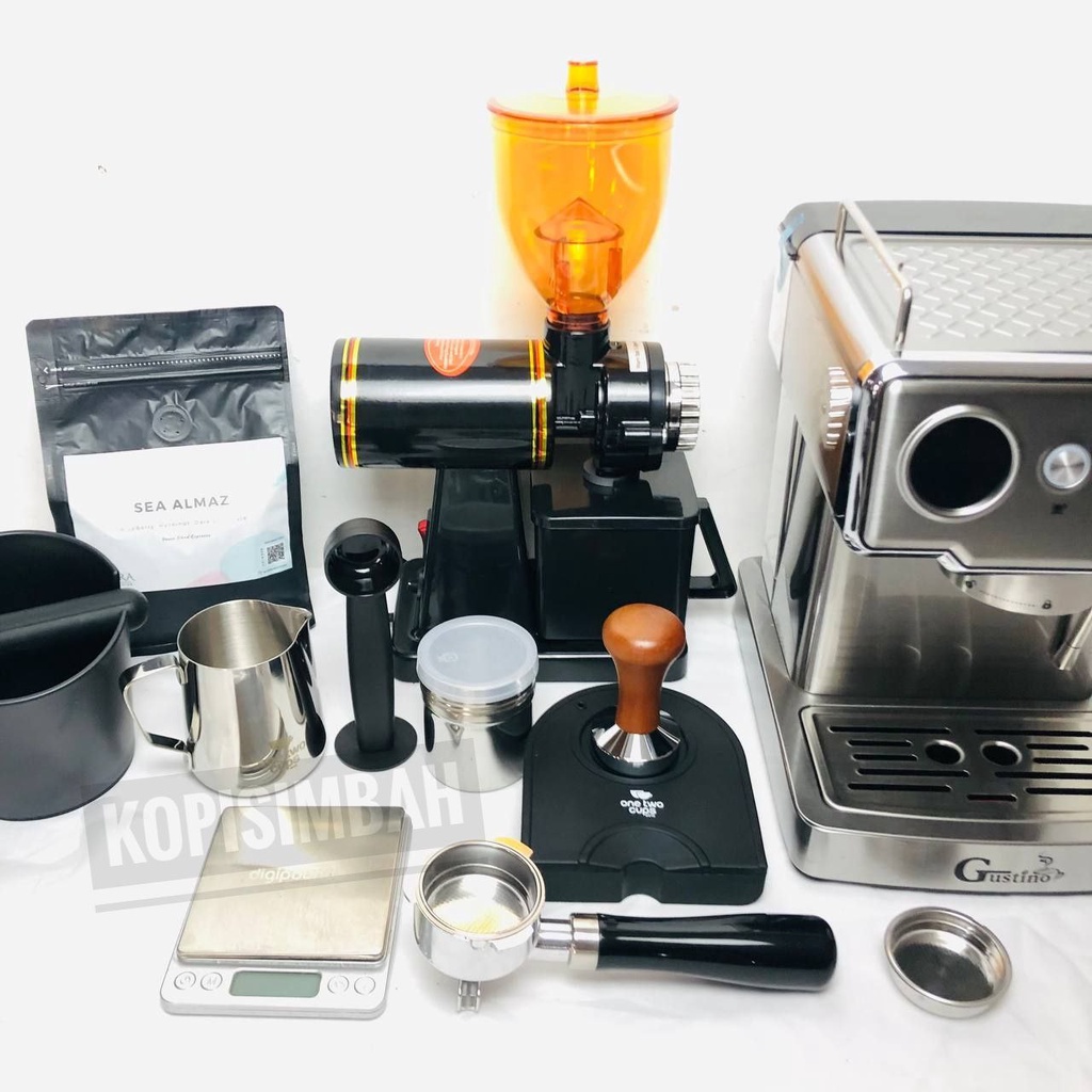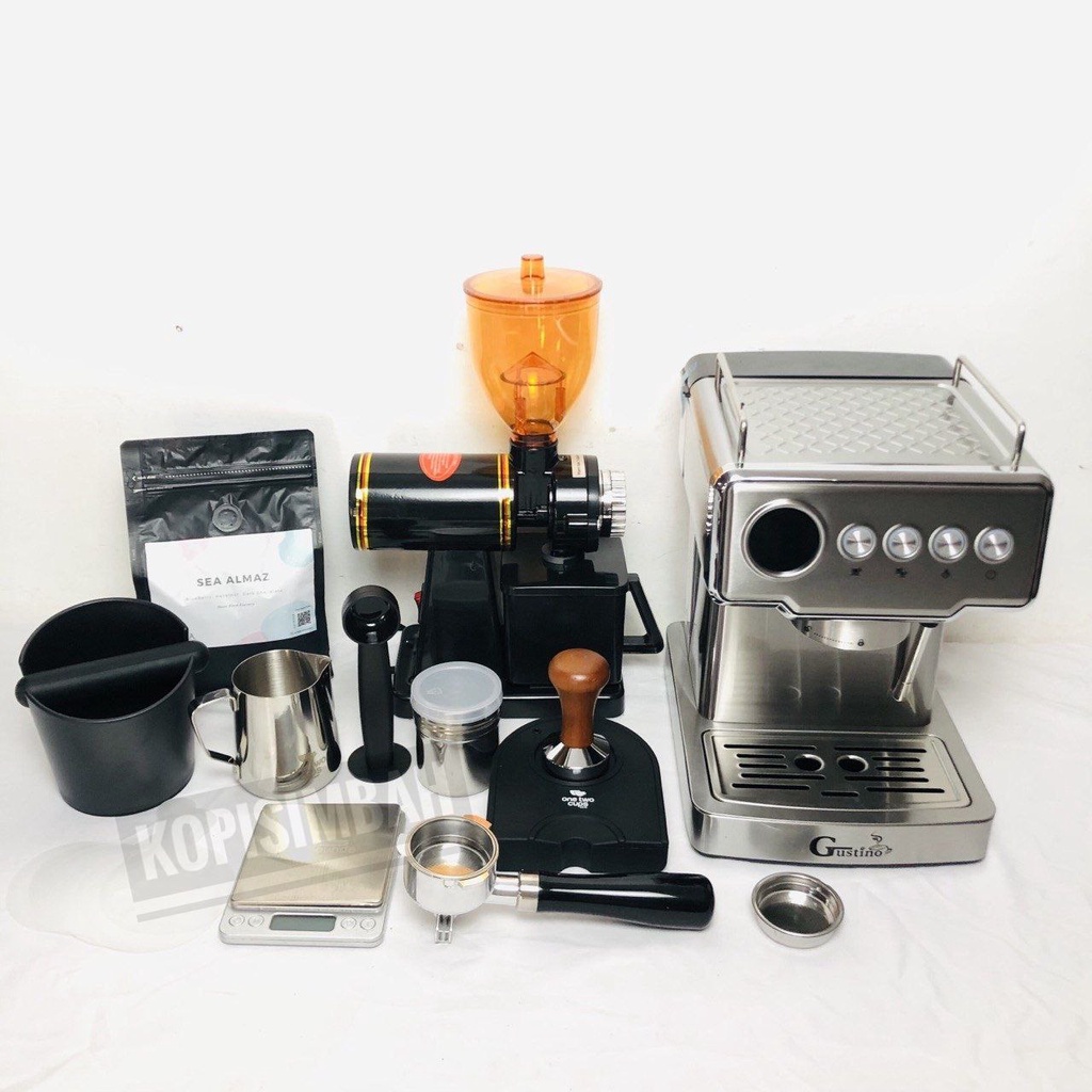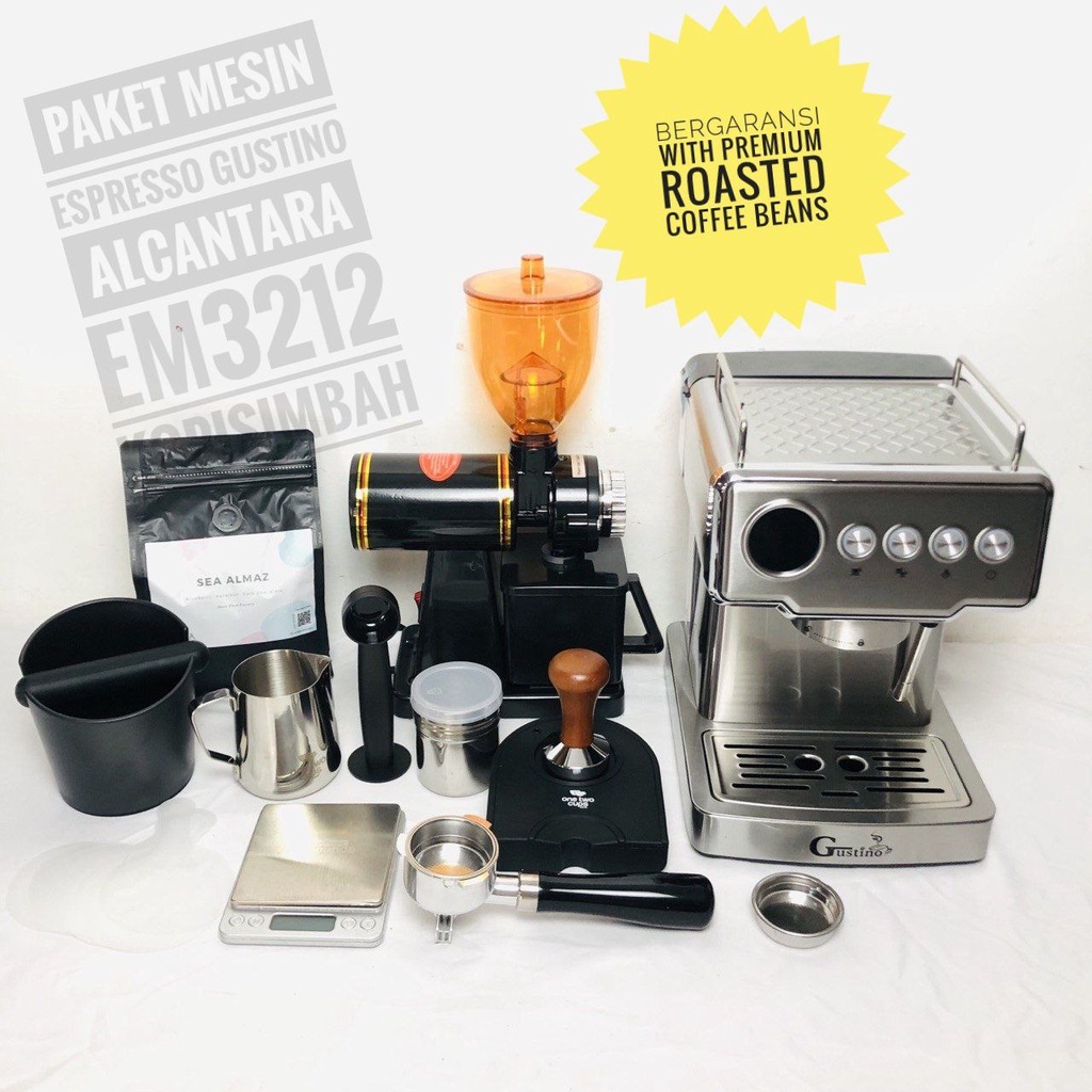 Paket Mesin Espresso Gustino Alcantara Em3212 Coffee Maker Alat Pembuat Kopi Susu With Grinder N600