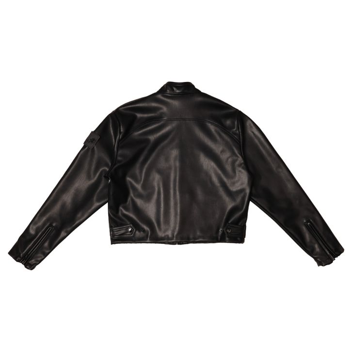 W.Essentiels Mirage 2000 Boxy Biker Leather Jacket Noir Black/Asphalt