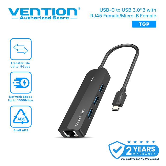 VENTION USB Type C to LAN with Micro USB Power Supply - USB 2.0 + LAN HUB + LAN