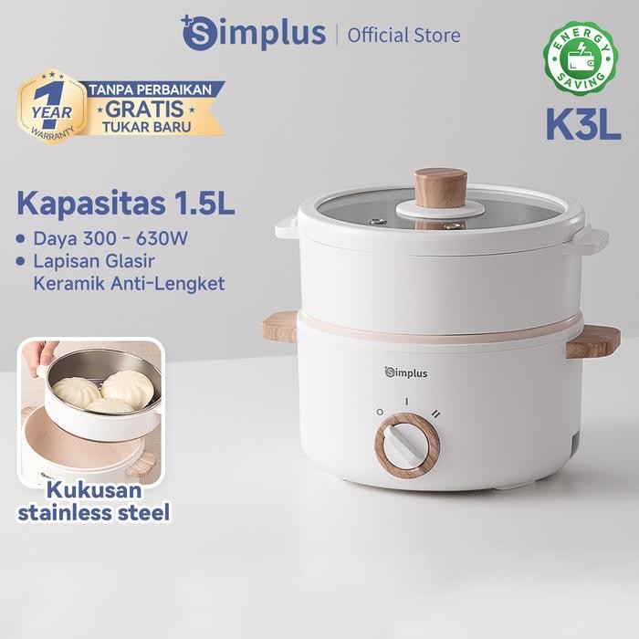 Simplus Panci Elektrik Panci Serbaguna Electric Pot Low Watt 630W 1.5 Liter Anti Lengket 2 Pengaturan Suhu Garansi