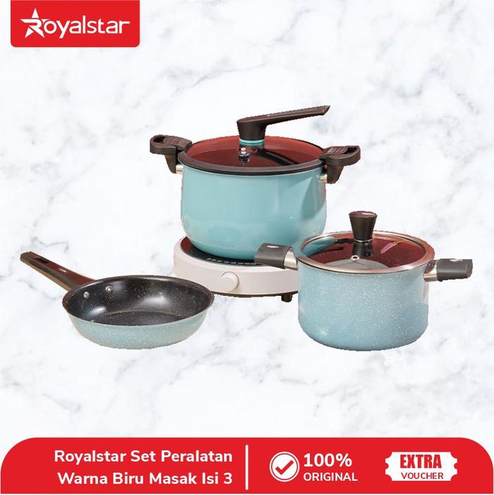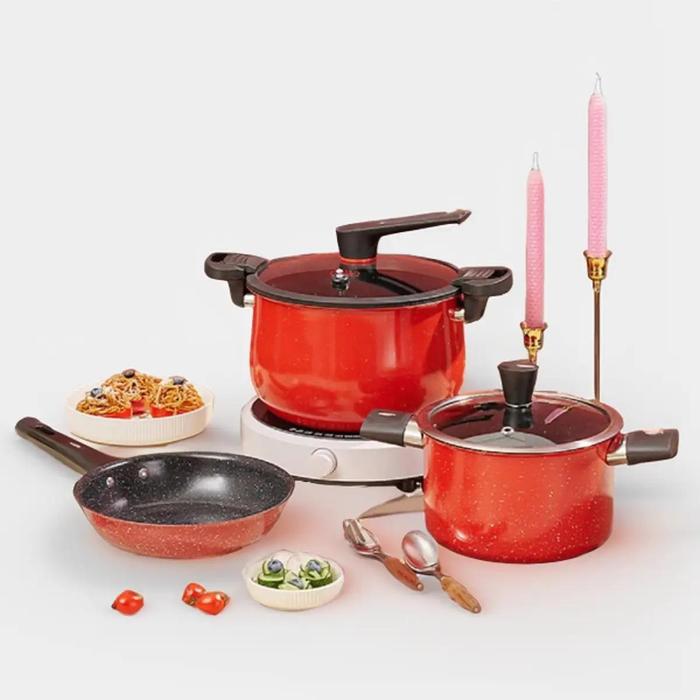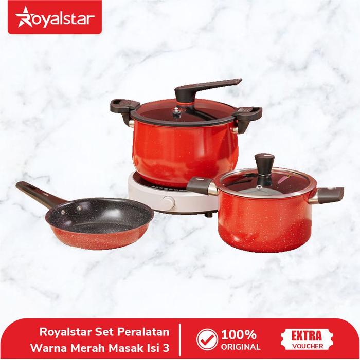 Royalstar 1 Set Isi Panci + Wajan + Presto Serbaguna Tahan Karat Teflon Kitchenware - Merah