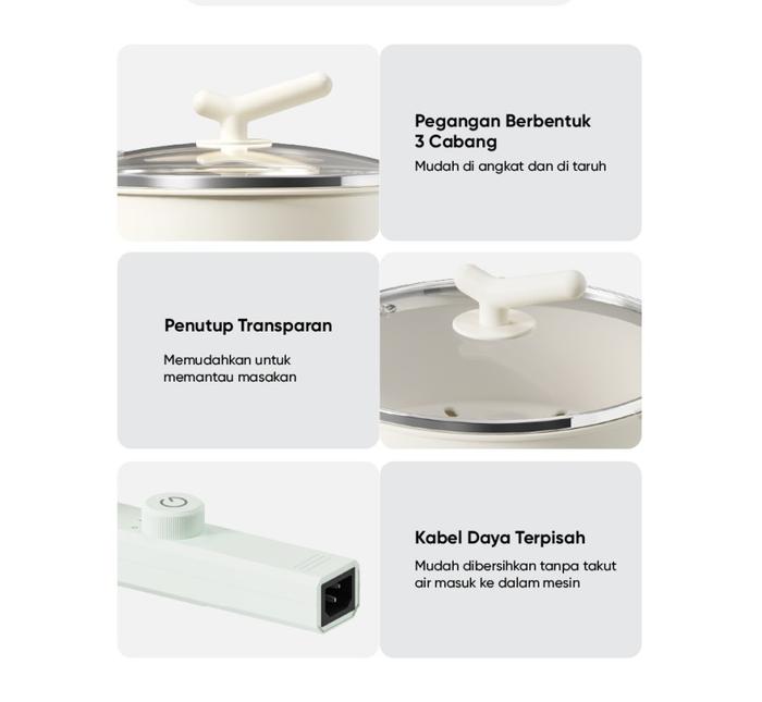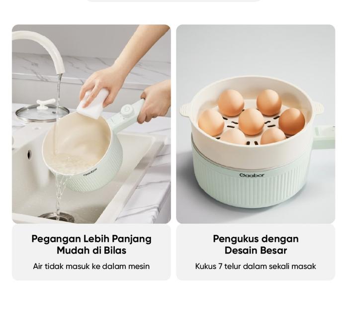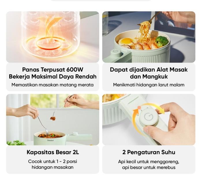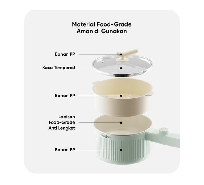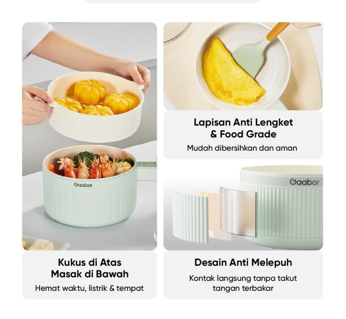 Gaabor Panci Listrik Food Grade Electric Cooker Anti Lengket 2L 600W Tutup Kaca Free Kukusan EC-20M01A