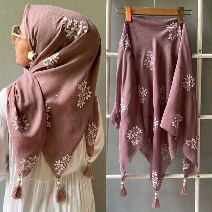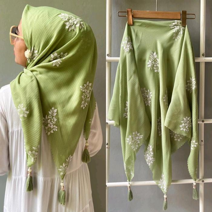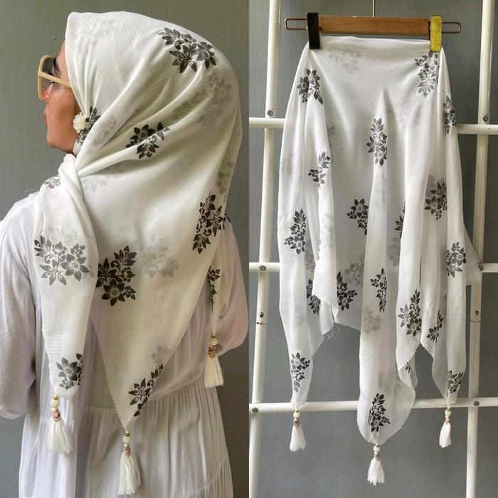 KERUDUNG SEGI EMPAT MOTIF BUNGA MELATI NEW ARRIVAL - HITAM 115 x 115