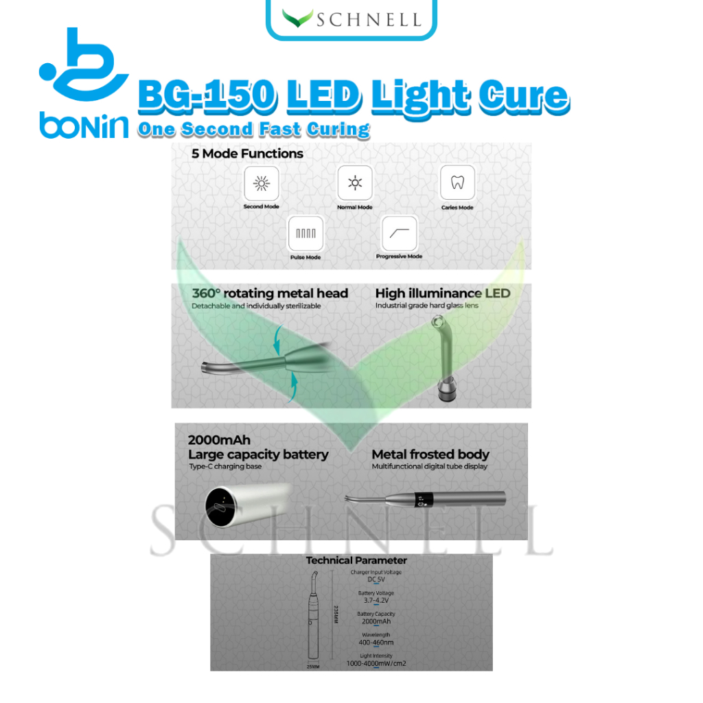 Light Cure / Light Curing LED 1 Second Fast Curing (Metal Body) BG150 / BG250 - BONIN