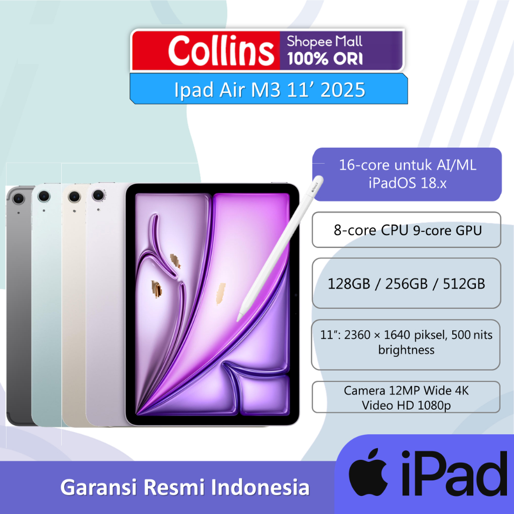 APPLE IPAD AIR M3 2025 A16 128/256GB WIFI 11 INCH - GARANSI RESMI INDONESIA