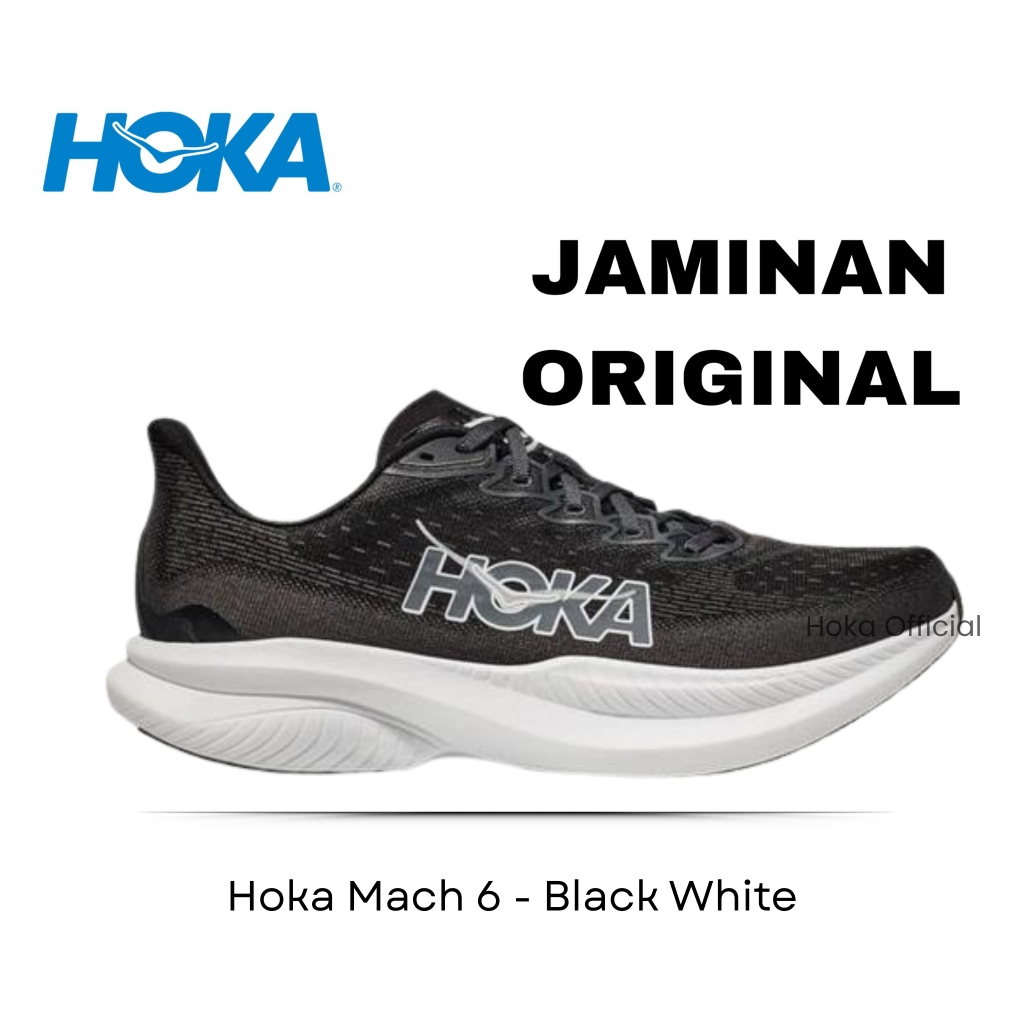 H0ka Sepatu Mach 6 Running Shoes Black White