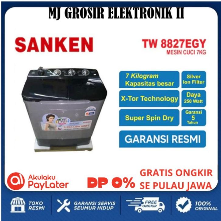 GRATIS ONGKIR MESIN CUCI SANKEN TW 8827 8KG 2 TABUNG TW8827 / 928 / 8828 / 8900 8KG X-TOR HEMAT LISTRIK AQUA SHARP