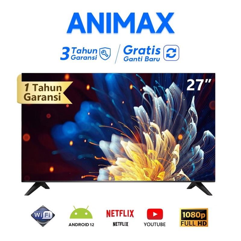 Animax 27 Inch Smart Tv 30 Inch Tv Led Digital Android 11.0 Fhd Televisi Bisa Youtube