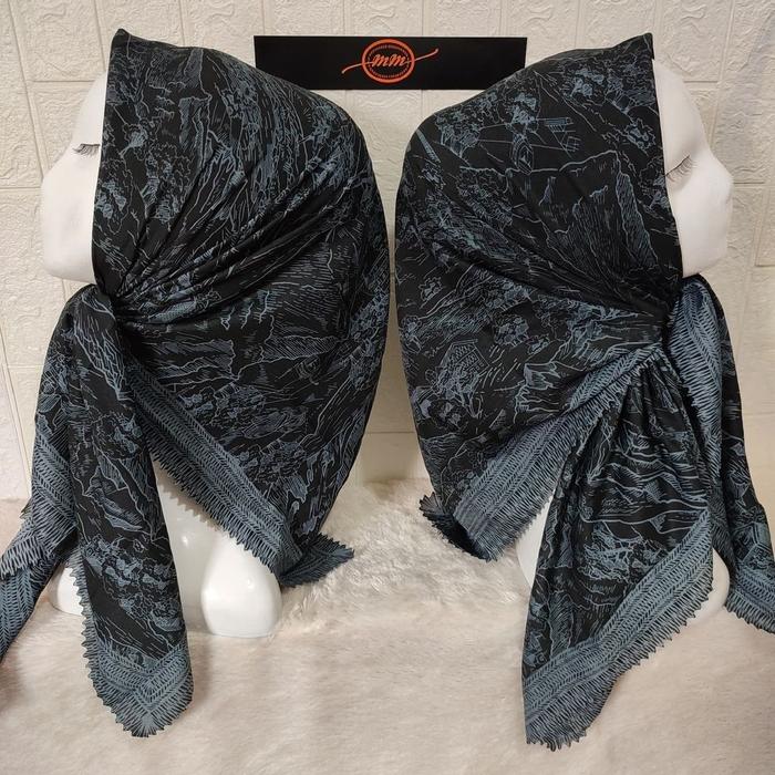 HIJAB SEGI EMPAT VOAL MOTIF SCENE HITAM KERUDUNG JILBAB MURAH - - -