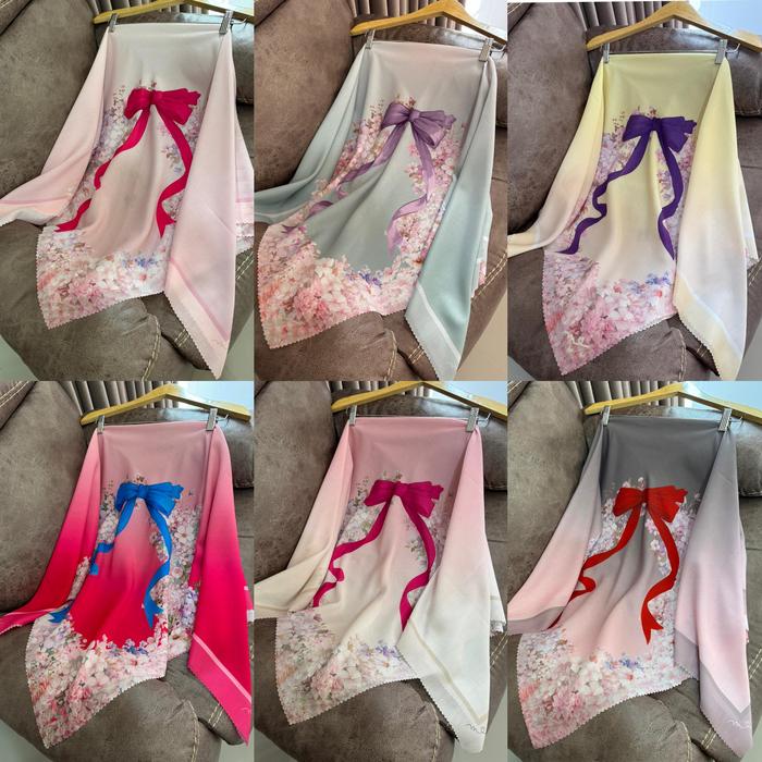 HIJAB SEGI EMPAT GRADASI PITA FLOWERS TERBARU / KERUDUNG MOTIF VIRAL - RIB Flowers 01