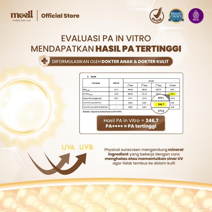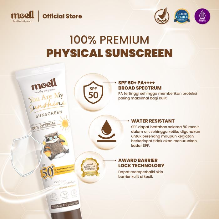 Moell Physical Sunscreen Anak 30ml Dengan SPF (50+) PA(++++) Broad Spectrum Water Resistant