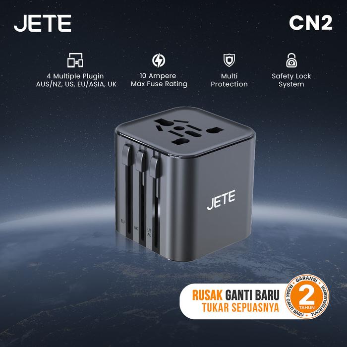 JETE CN2 8A Universal Travel Adaptor Charger Adapter USA/EU/UK Garansi 2 Tahun Batok