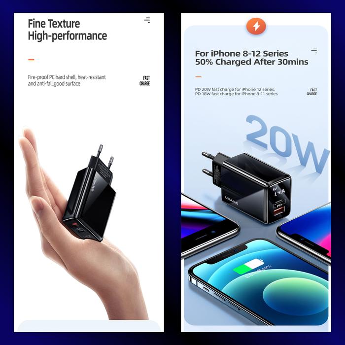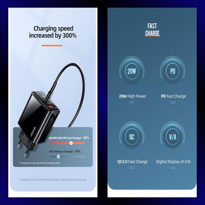 USAMS T40 Adapter Charger Fast Charge Digital Display QC3.0 PD 20W
