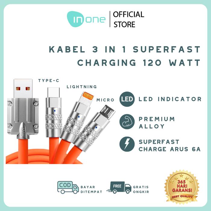 INONE Kabel 3 IN 1 Fast Charging Cable 120W USB Micro Type