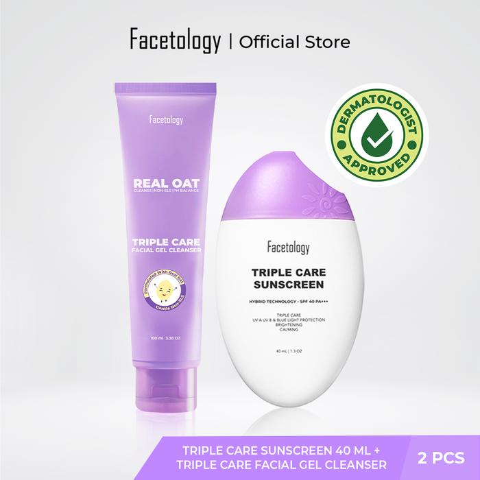 Facetology Bundling Triple Care Sunscreen SPF 40 PA+++ 40ML & Triple Care Facial Gel Cleanser