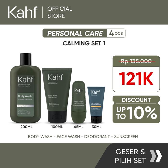 Kahf Paket Personal Care Isi 4 (Face Wash + Sunscreen Moisturizer + Body Wash + Deodorant)