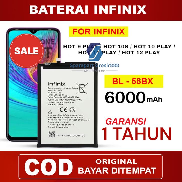 baterai hp OFFO FIFO xiaomi iphone BATERAI INFINIX HOT 9 PLAY / HOT 10S / HOT 10 PLAY / HOT 11 PLAY / HOT 12 PLAY BL58B