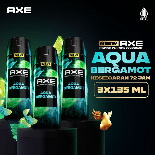 AXE PREMIUM PERFUME DEODORANT AQUA BERGAMOT 135ml x3
