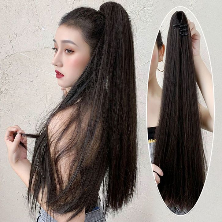 EKSKLUSIF Hairclip Ponytail Lurus ,Wig wanita45CM,jepit rambut ekor kuda untuk wanita dengan rambut panjang,