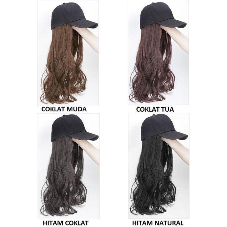 PROMO Wig Topi Baseball Rambut Panjang Keriting dan Lurus, Topi Baseball Wig Hat Hair Clip Rambut Palsu Wanita
