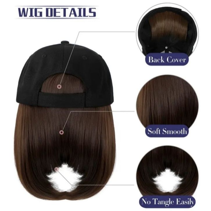 TERLARIS Realistic Wig Topi Bob Wig Pendek Wig Topi Wanita Wig Topi Korean Style Topi Baseball Wig Wig Topi