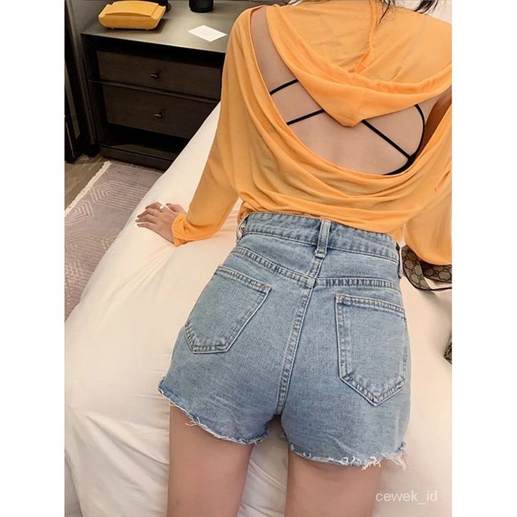 Celana Hotpants Jeans Wanita Korea Warna Putih Ripped Snow Hot Pants Jens Sobek Wanita High Waist Celana Denim