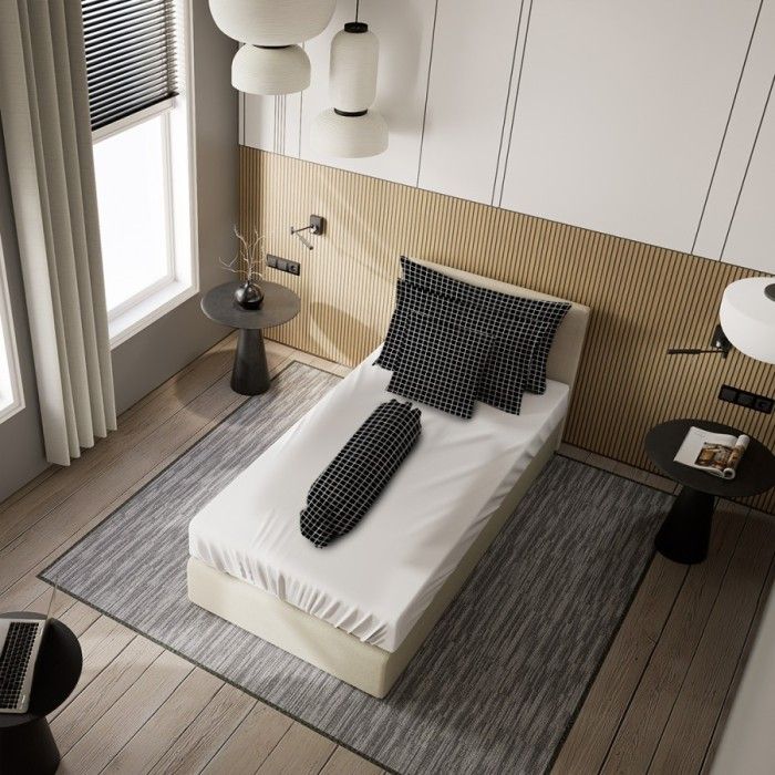 TERLARIS Sprei Nyenyak Aesthetic Motif Kotak Black and White - Extra Single 100x200 obikr