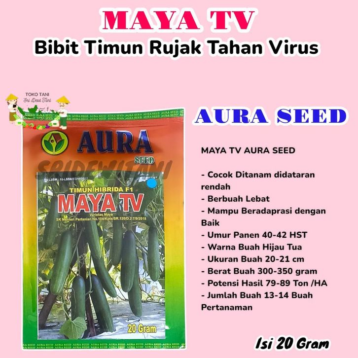 Benih BIBIT TIMUN RUJAK TAHAN VIRUS MAYA TV 20 9ram 800BUTIR AURA SEED
