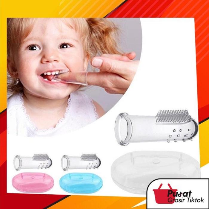 BISA c06 5607 Sikat Gigi Bayi Dengan Kotak / Sikat Gigi Jari / Pembersih Lidah Bayi Brush - Biru