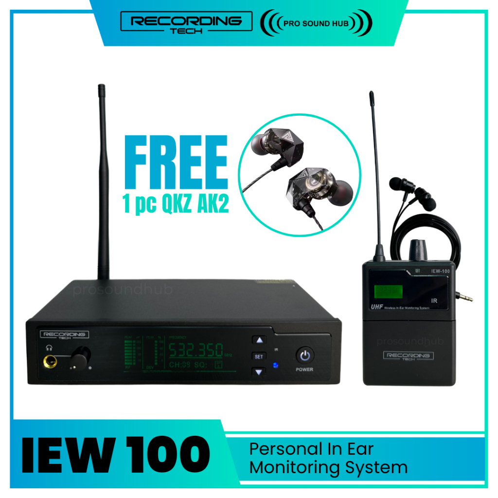 Recording Tech Iew-100 Iew100 Wireless Iem In Ear Monitor Set Receiver Transmitter Free Iem