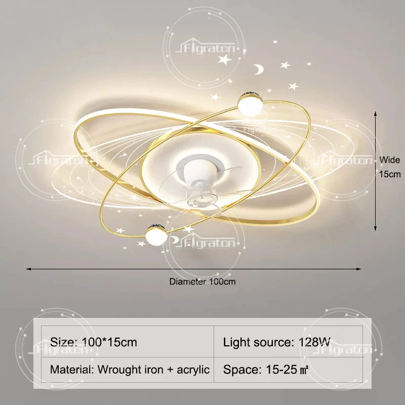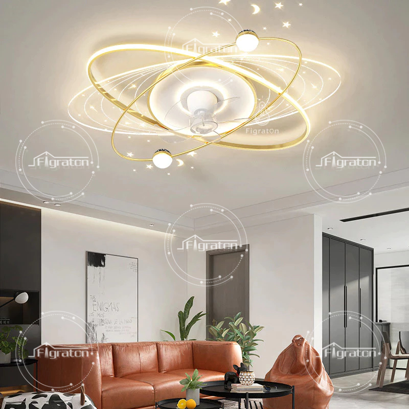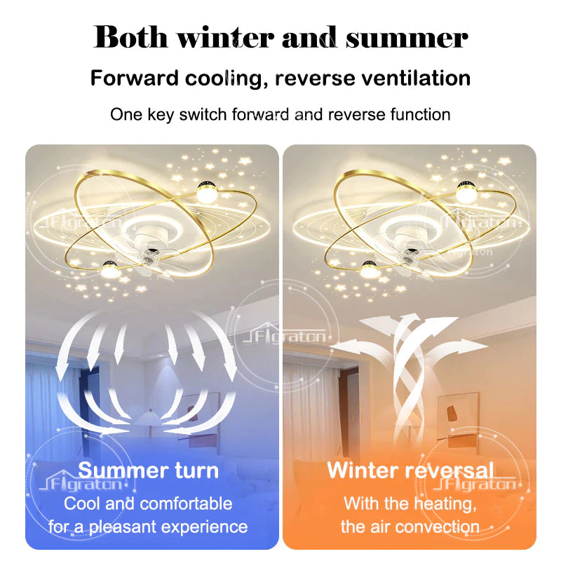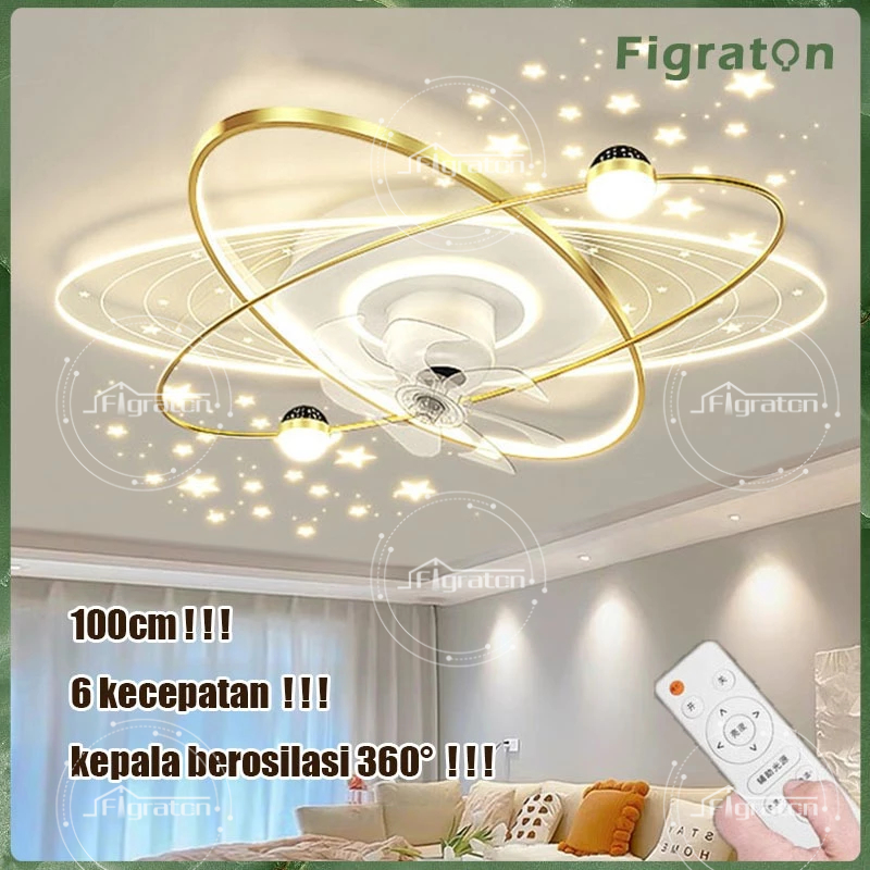 Kipas Angin Ruang Tamu Lampu Plafon Bintang 100Cm Rotasi 360° Led 3 Warna Minimalis Modern Simple Langit-Langit Untuk Ka