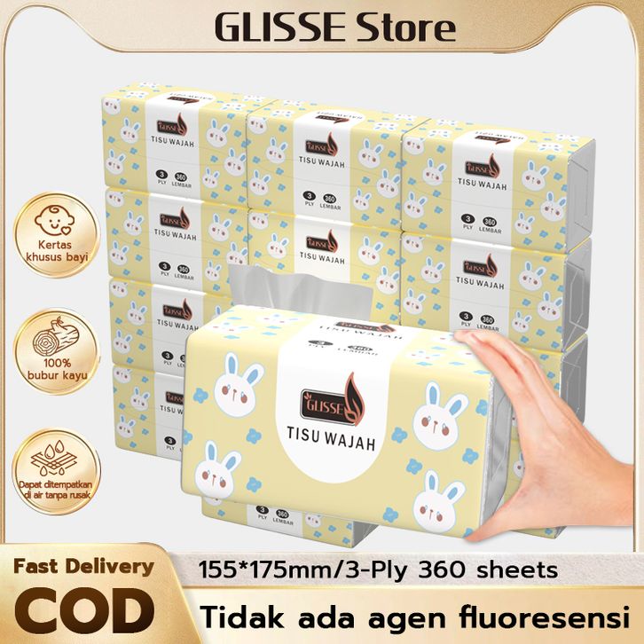 GLISSE Tisu Wajah 360 Lembar Tisu Wajah Halus dan Lembut / 3 Lapisan Tebal / Promosi Waktu Terbatas