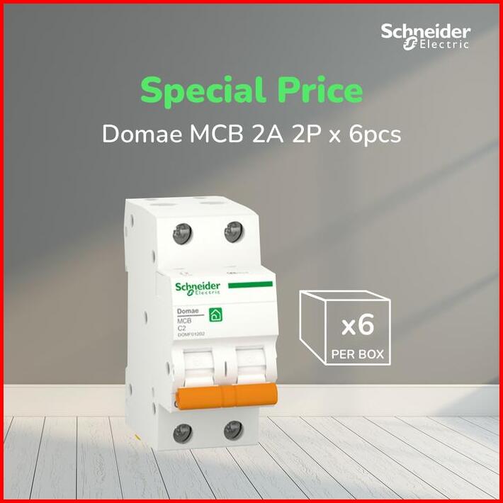 SCHNEIDER ELECTRIC NEW DOMAE MCB 2A 2P - DOMF01202, SCHNEIDER ELECTRIC NEW DOMAE MCB 2A 2P (6PCS)
