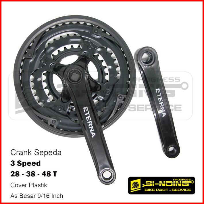 Gear Gir Tengah Crank 3 Speed Eterna 28 38 48 T Bb Kotak As Besar Sepeda Mtb Gravel Besi Hitam
