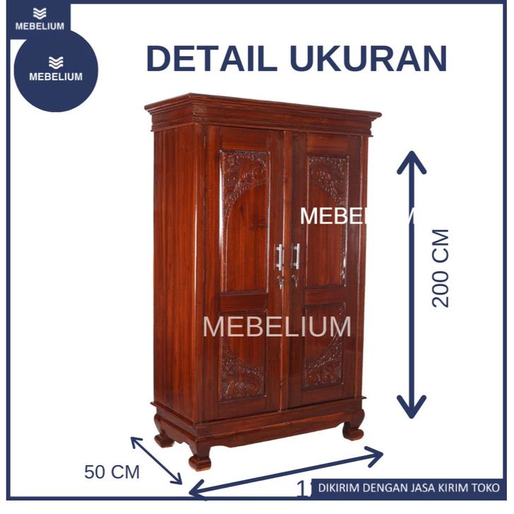 lemari kayu jati [ORI] Lemari Pakaian Kayu Jati 2 Pintu Zahra Lemari Baju Kayu Asli Anti Air Anti Rayap Mebelium