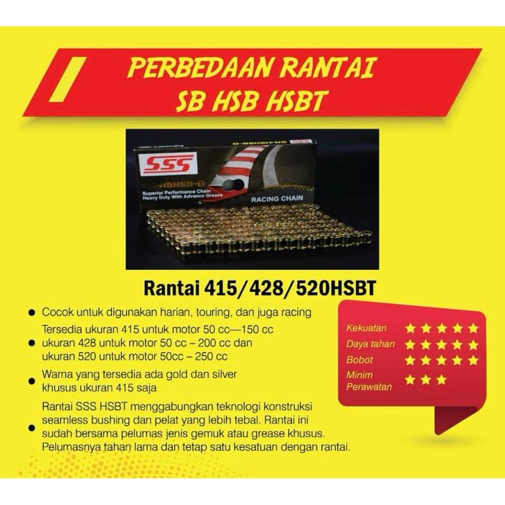 Rantai SSS 428 HSBT 120L 130L 140L GOLD HEAVY DUTY
