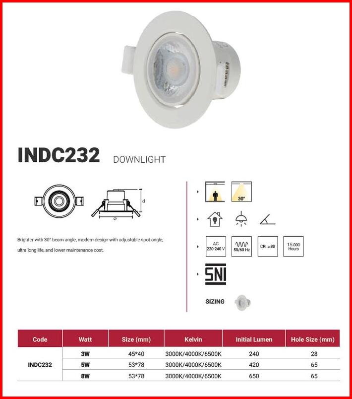 Inlite Led Lampu Downlight Indc232 5 Watt 8 Watt