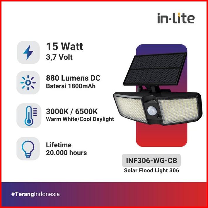 In-lite Lampu Sorot Led Inf306-wg Solar Flood Light 15 Watt Remote
