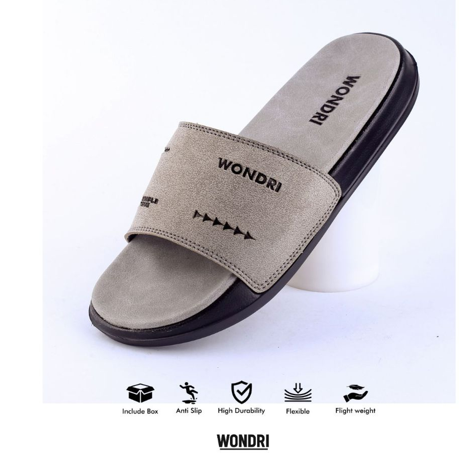Wondri - Sandal Slide Slip On Pria Wanita Kama Full Grey