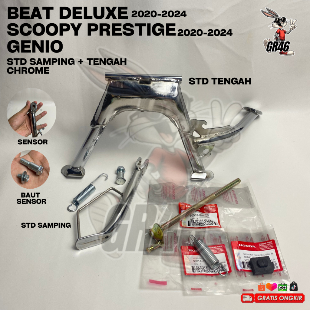 Honda Scoopy Prestige Beat Deluxe Genio Standar Tengah Standar Samping Chrome