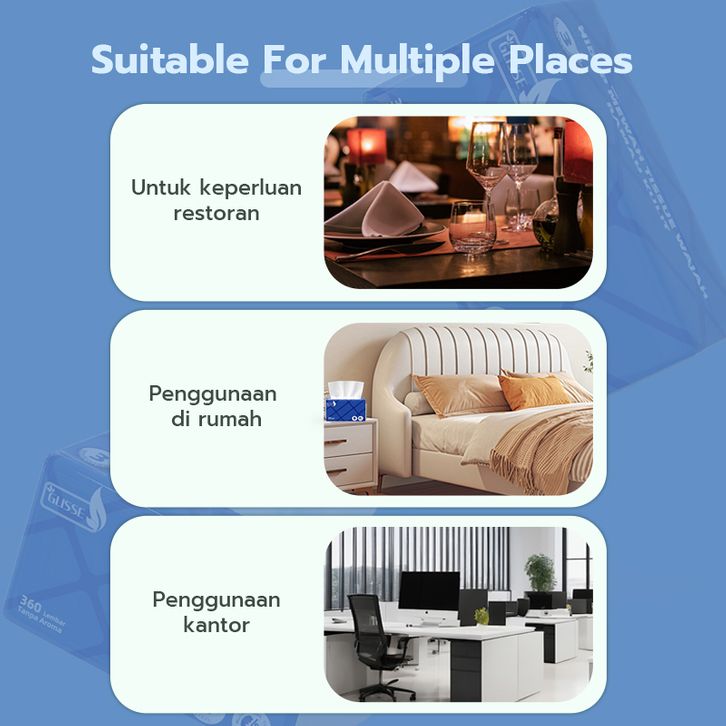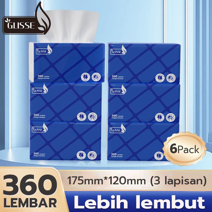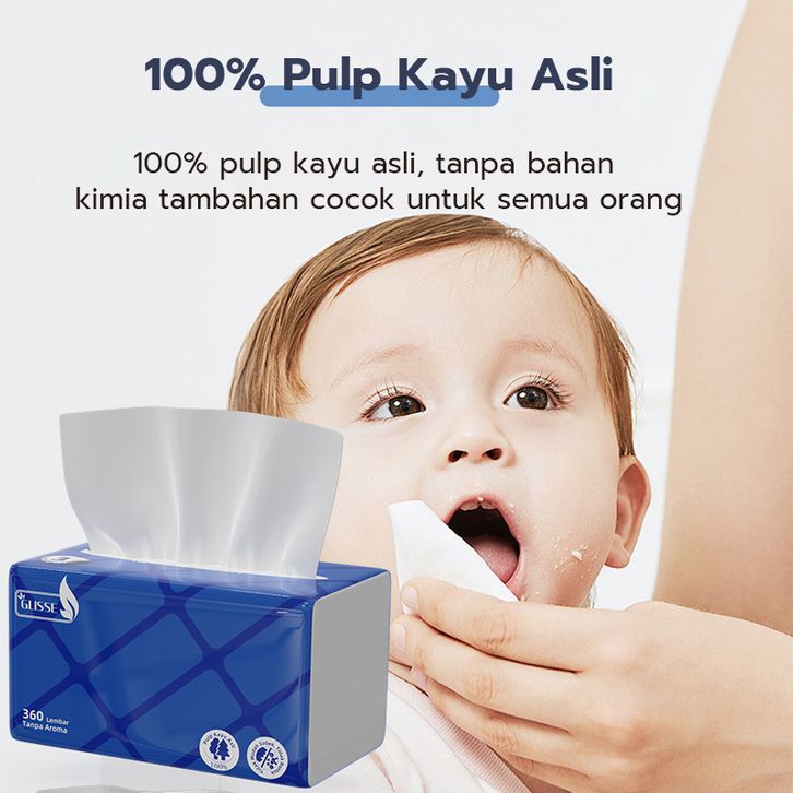 GLISSE Tisu Wajah 360 Lembar 3 Lapisan Tebal, Halus dan Lembut, Paket Ringan 120*175mm, Tersedia untuk Bayi