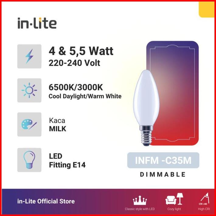 In-lite Led Lampu Bohlam Filament Candle C35 Milk