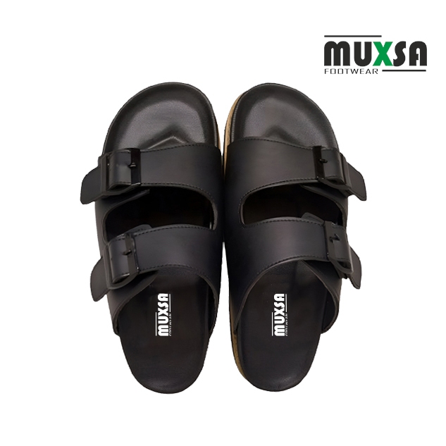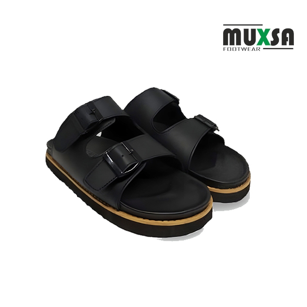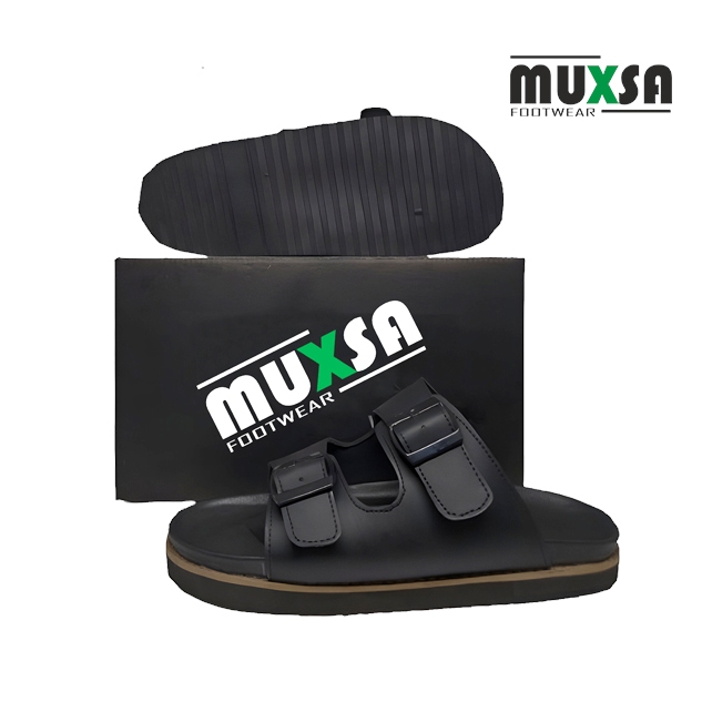 Muxsa Sky Strap 2 Sandal Slide Remaja Dewasa Slip on Sandal Puyuh Sandal Kulit Sintetis Black