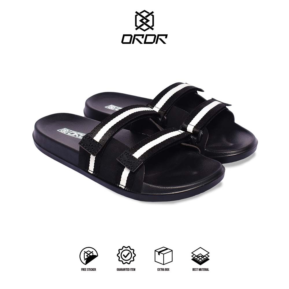 ORDR Footwear - Hydra Stripe Black White Sandal Pria Casual Slip On Slop Slide Ringan Anti Licin